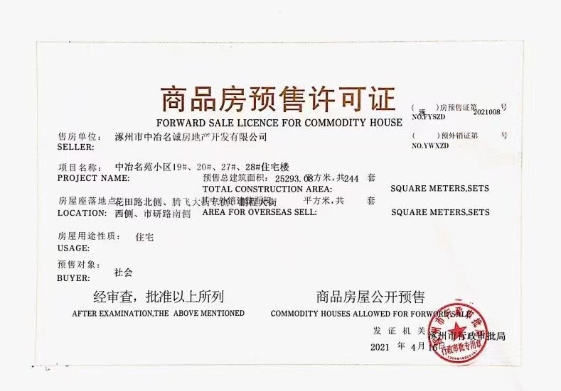 - 涿州市中冶名誠房地產開發(fā)有限公司
