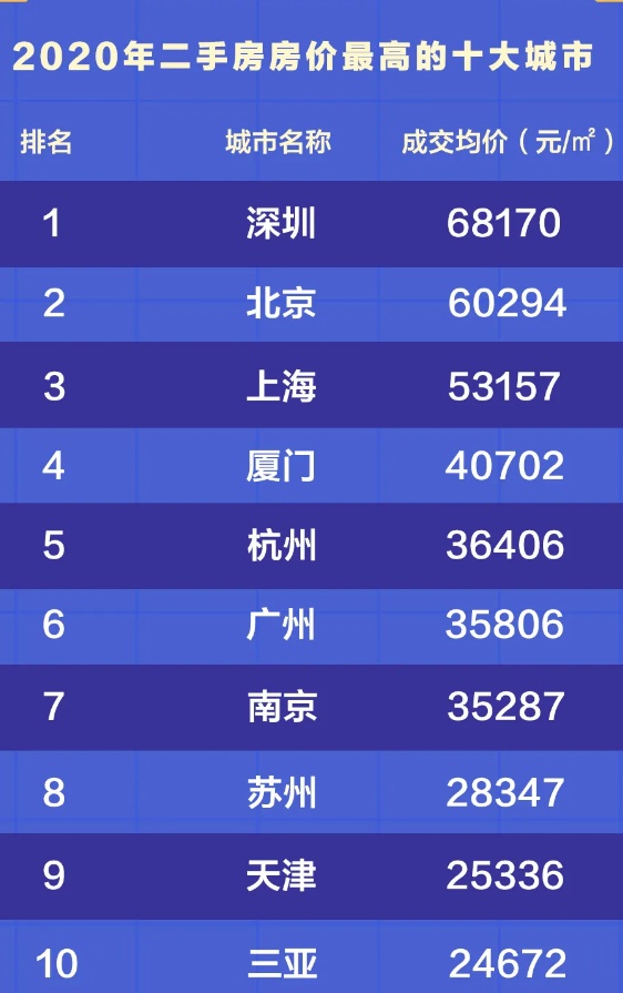 另外,從二手房的交易均價(jià)來(lái)看,深圳房?jī)r(jià)自2019年9月超過(guò)北京成為第一,今年繼續(xù)保持第一。未來(lái)中短期內(nèi),深圳市場(chǎng)受供需矛盾剛性約束,預(yù)計(jì)還將保持第一。廈門和杭州均超越了廣州,分列第四、第五位,杭州位居第六。從區(qū)域分布看,TOP10城市主要分布在長(zhǎng)三角、珠三角及京津冀三大核心城市群。