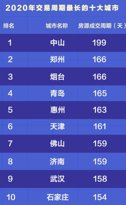 二手房源的交易周期代表市場(chǎng)的活躍程度,也代表了房屋的流通性。其中,中山二手房房源平均成交周期逼近200天,也就是在中山賣出一套二手房平均需要近7個(gè)月。上榜城市房源平均成交周期均在5個(gè)月以上,二手房出售難度大與城市住房供需矛盾直接相關(guān)。