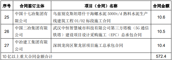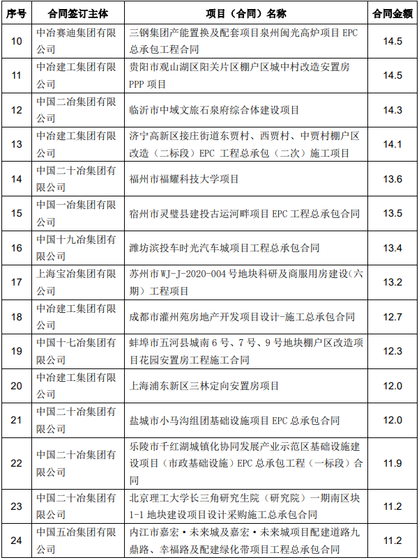 12月份,公司新簽單筆合同額在人民幣10億元以上的重大工程承包合同如下: