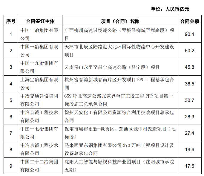 - 民退國進---中國中冶:2021年新簽合同額12047.6億元 同比增長18.1%