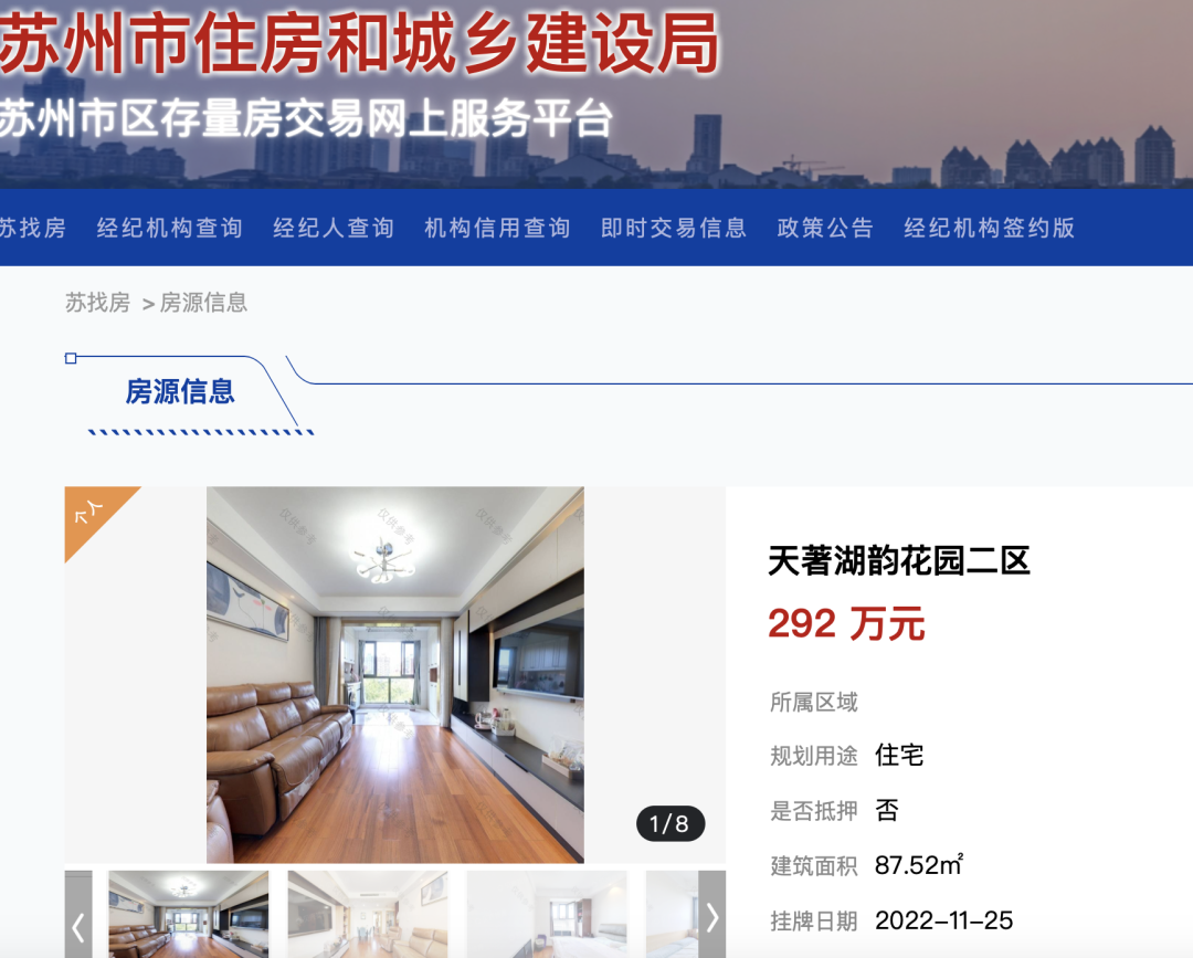 截至11月25日,“蘇找房”平臺掛牌展示的個人二手房源1000套,經(jīng)紀機構房源455套。